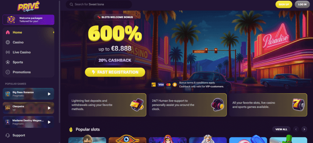 The site’s exclusive look and feel cater to elite players who prefer privacy, speed, and control. With instant withdrawals and a full crypto ecosystem, Privé Casino has carved out a niche among serious bettors who want a no-KYC, crypto-exclusive experience.